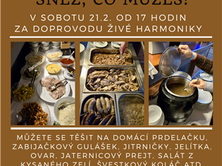 Přijďte si pochutnat na zabijačkových dobrotách za doprovodu živé harmoniky.