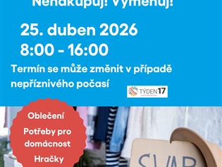 Buďte cool a nenakupujte ale vyměňujte. Pravidelný swap se koná v sobotu 25. dubna v prostorách knihovny od 8:00 do 16:00 hodin. Termín se může změnit v případě nepříznivého počasí.