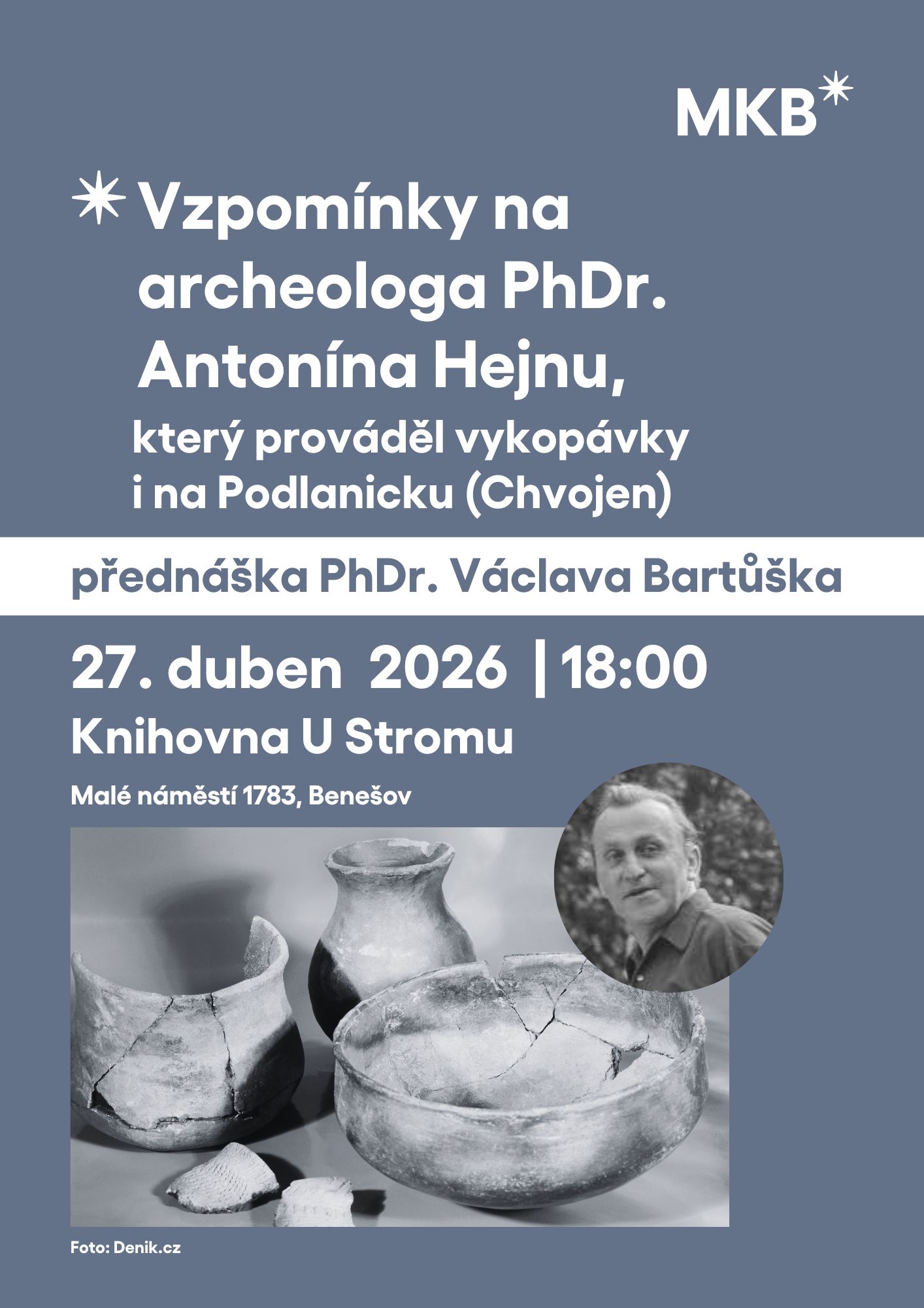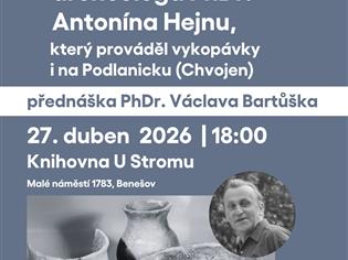 V přednášce PhDr. Václava Bartůška si připomeneme významnou osobnost české archeologie, Antonína Hejnu, který prováděl archeologické vykopávky i na Podblanicku. Přednáška se koná v knihovně U Stromu od 18 hodin.